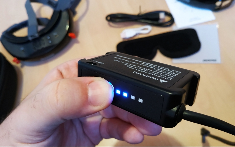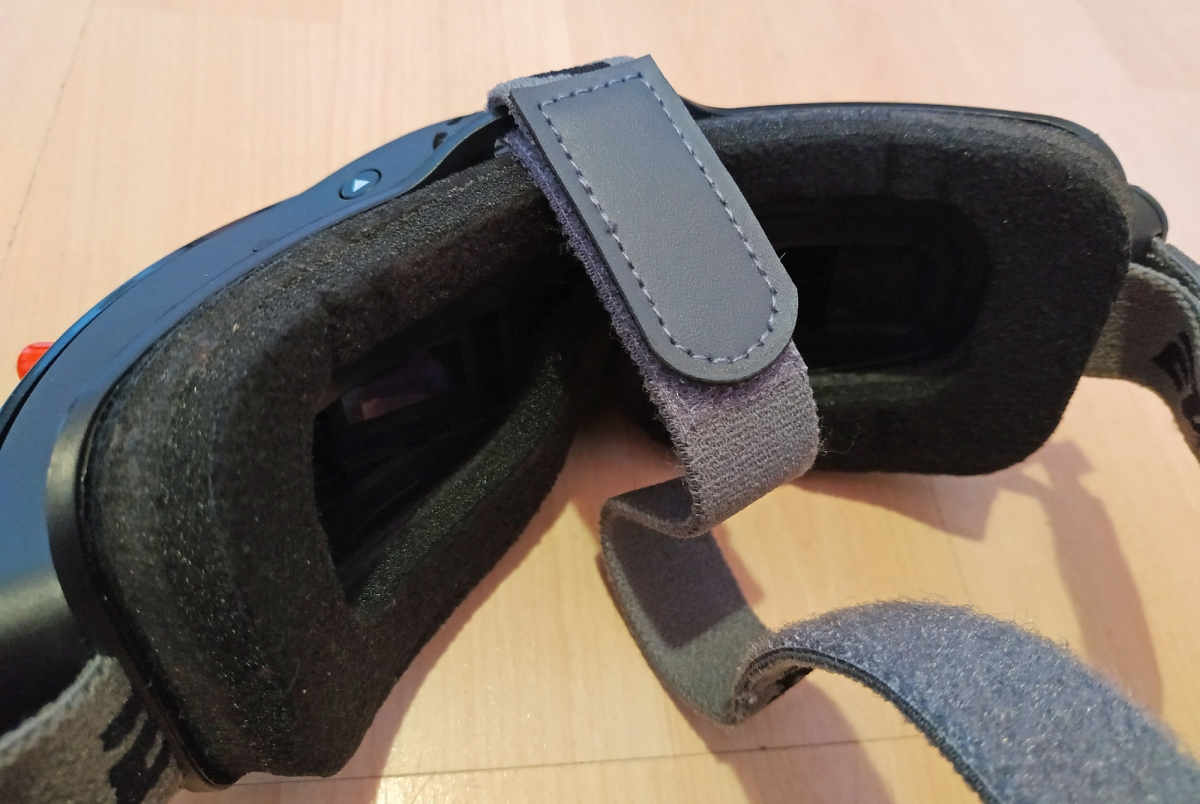 Az IPD 56-72mm között állítható, és a lencsék elé használhatjuk a Fatshark dioptriás előtét lencséit is. Itt találunk még USB csatlakozót FW frissítéshez, audio jack aljzatot, HDMI és AV bemenetet, és egy FAN 0-1 kapcsolót, amire nem jöttem rá mire jó, mert hogy ki nem kapcsolja az tuti, a manual sem ír róla semmit csak FAN on/off :)