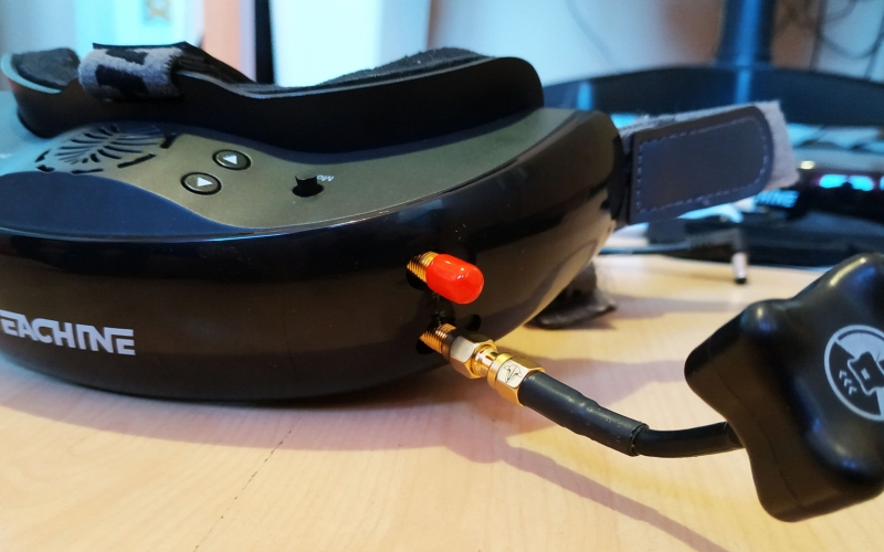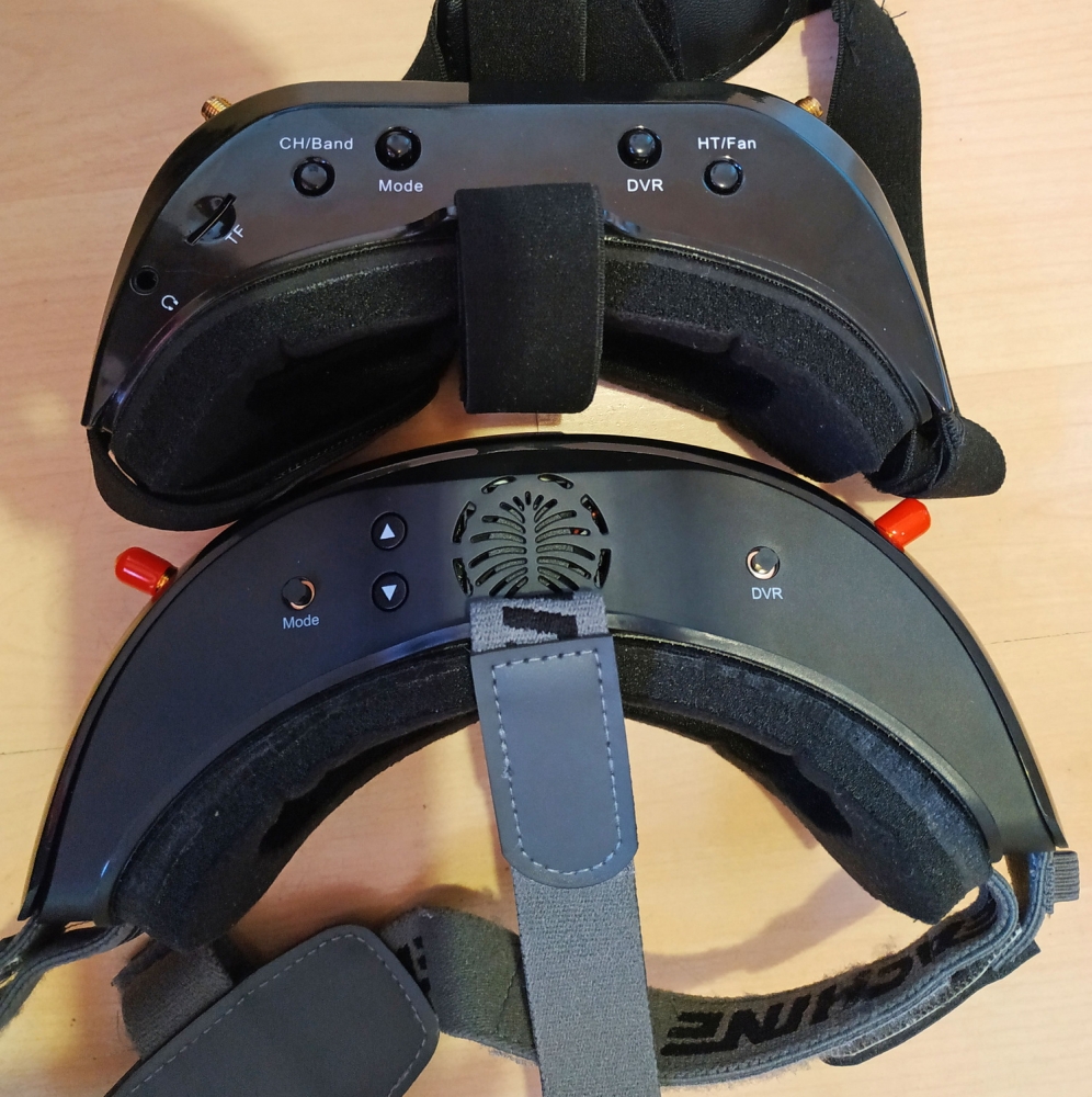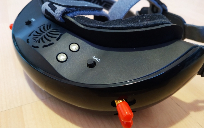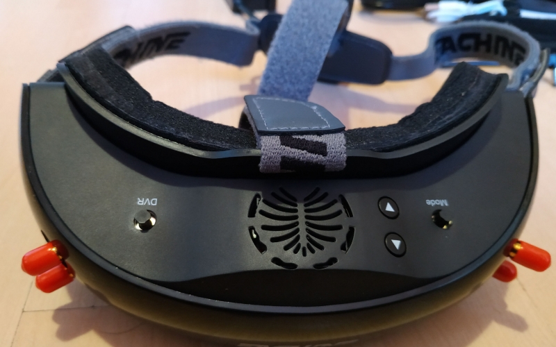 szemüveg anyagminősége amolyan közepes, rendben van, úgysem ez a lényeg. Egyedül talán a DVR és MODE joystickokra lehet panasz, nincs lekerekítve, szinte karcol mikor használjuk. Az összeszerelés rendben van, nem recseg, nem ropog, van benne anyag, ami a súlyon viszont nem kicsit látszik. Már ahogy felemeljük, érezhetjük, hogy ez bizony több a megszokottnál... Az EV200D súlya akku nélkül kereken 300g... Összehasonlítás képpen a korábban tesztelt Aomway szemüveg csak 180g! Ha az aksit is rárakjuk, akkor 398g lesz a fejünkön. Ez még a beépített aksis EV800D doboz szemcsinél is több, az is csak 378 gramm. Mit jelent ez a gyakorlatban? Azt kell mondjam hogy nemsokat. Fejre felvéve, miután felraktam a vastagabb szivacsot és a felső fejpántot is, egész kényelmes, talán még kényelmesebb is mint a könnyebb Aomway. Ez adódhat a jobb szivacs, fejpánt és méret miatt, ez jobban passzol a fejemre. Persze ez simán fejméret függő, másnak lehet kényelmetlen, ezért is mondjuk mindig, keressetek fel pár FPV srácot, és próbáljátok fel mi a nektek kényelmes, ez nagyon fontos, nem lesz jó feeling kényelmetlen szemcsivel repülni.