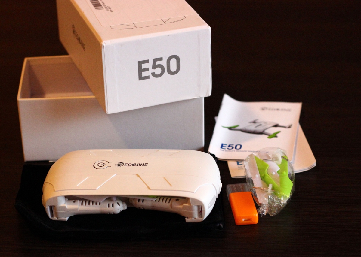 Az Eachine E50 egy játék kategóriás drón, szénkefés motorokkal, alacsony felbontású kamerával, telefonos irányíthatósággal, kompakt mérettel. A gép gyakorlatilag kisebb, mint egy mai népszerű telefon, kapunk hozzá egy kis szütyőt is, amiben tudjuk hordozni, de akár a zsebünkben is elfér.