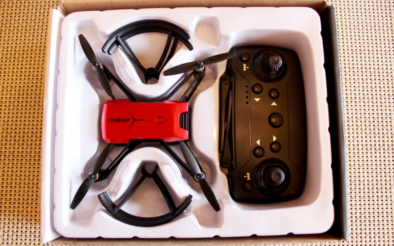A csomagolás tűrhető, szép a doboz, minden a helyén, semmi extra, de azért nem is a gagyi kategória. Kinyitva a dobozt, ha nem tudnák hogy ez egy klón, simán hihetnénk hogy a Tello van benne, teljes a hasonlósák, még a DJI távot is egy az egyben lemásolták!